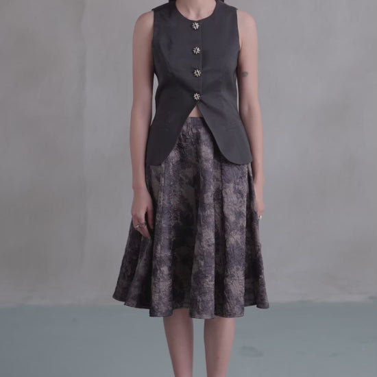 Pair it over wide-leg pants, tailored shorts, or a sculpted midi skirt. Ideal for layering over both minimalist and maximalist bases.